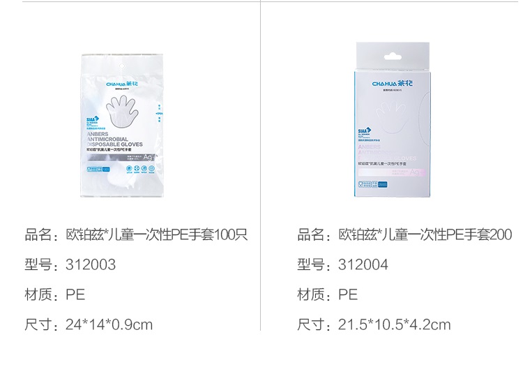 Chahua AG+ Anti-Microbial Disposable Food Gloves, Adult and Children Size available