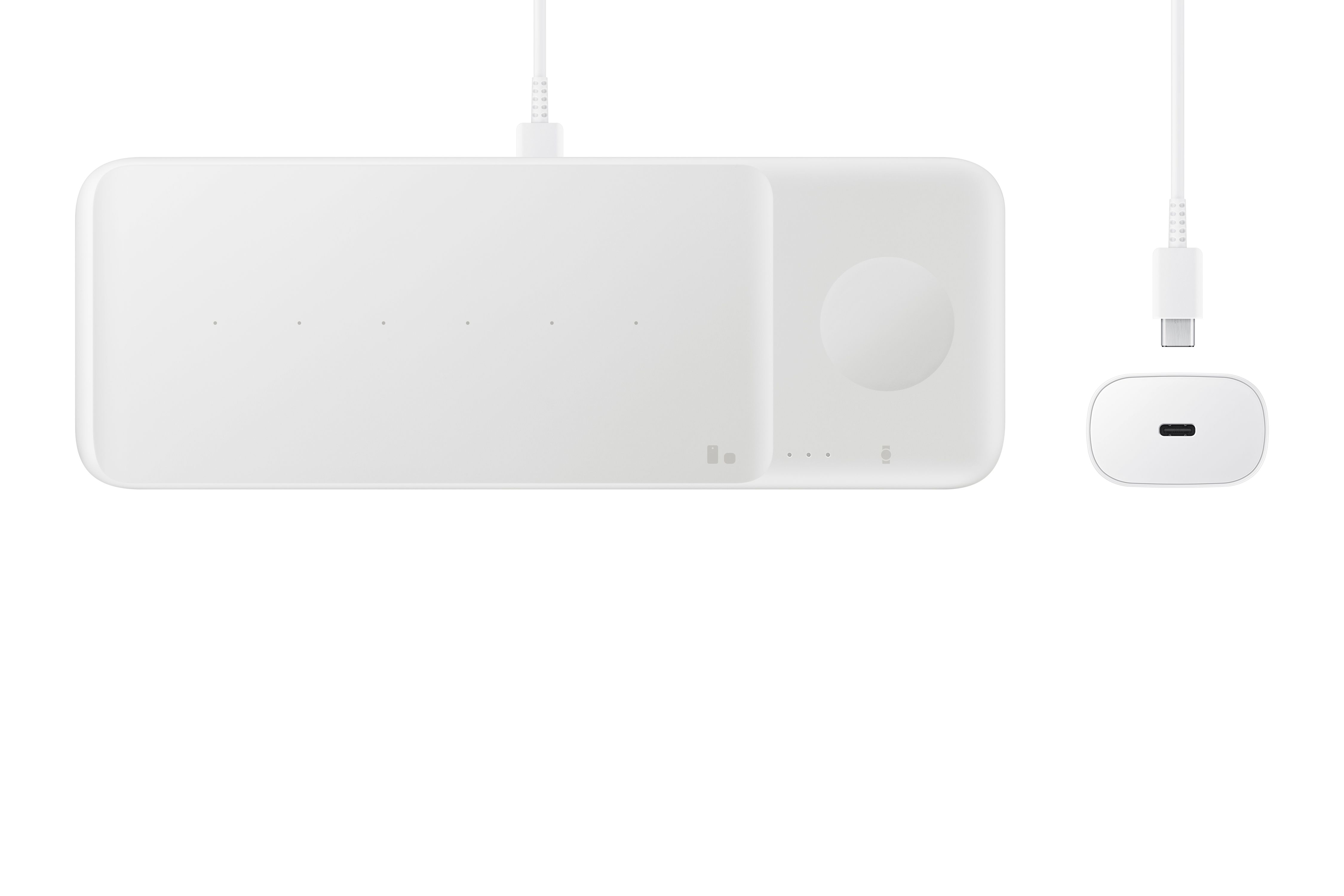 With the dedicated spot for Galaxy watches, you can keep your timepiece powered up to get you through your day. An interior magnet on the right side of the charger guides your watch into place to charge. And on the left you can charge your phone, Galaxy Buds series, and more.