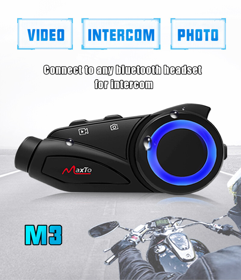Maxto M3 Waterproof Intercom Motorcycle Headset 1080P HD Camera 6 Riders Group Talking Bluetooth Moto Interphone & Wifi Video Recorder with Soft wire hard wire