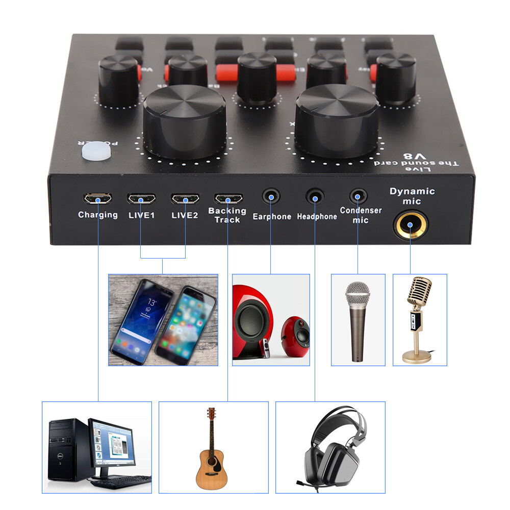 Live Sound Card: dual DSP smart core for arithmetic processing of various complex sound effects, intelligent compatible with mobile phone, laptop, computer, smart television.