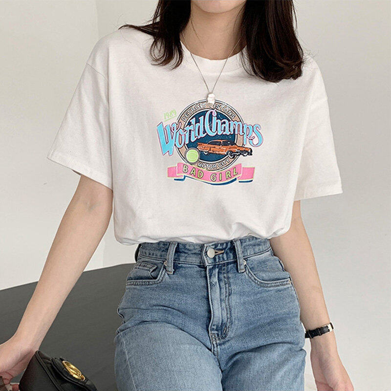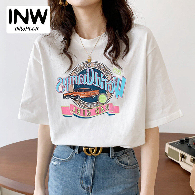 • INWPLLR Casual All-match Women's Tops Letters Printing T-Shirts Summer Style Short Sleeve Women T-Shirt Newest Korean Cotton Tshirts Female