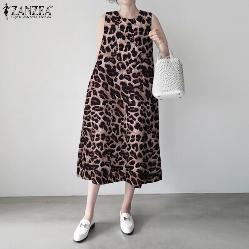 ZANZEA Womens Sleeveless Print Dress Sundress O Neck Bohemian Maxi Dress Loose Plus