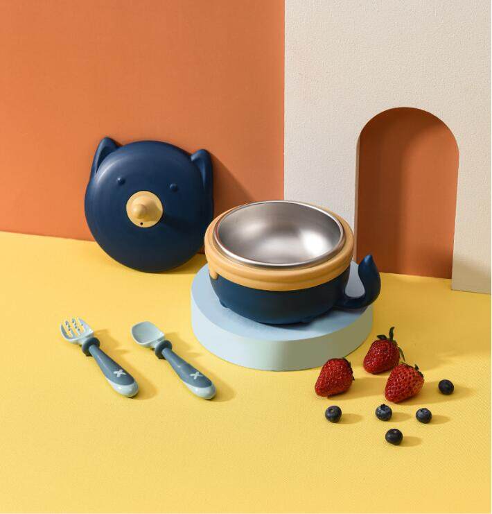 Baby Stainless Steel Insulated Bowl Removable Baby Suction Bowl Children's Tableware Set