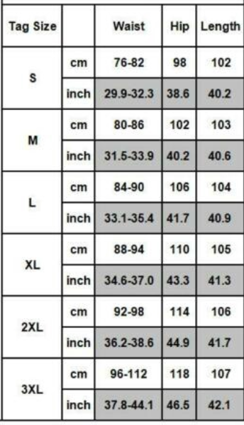 • Size:S/M/ L / XL / 2XL / 3XL / 4XL