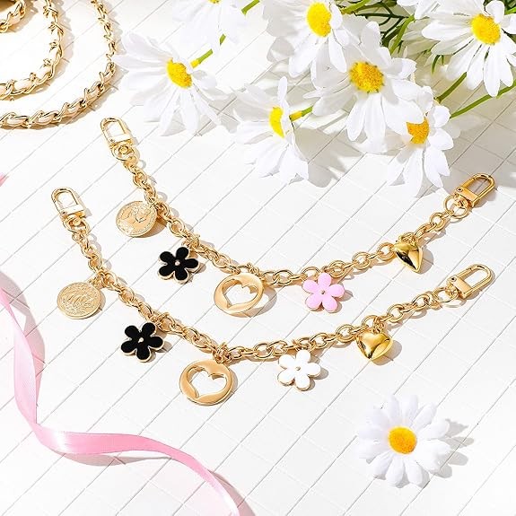 Eye-catching Design: The wallet replacement strap accessory is beautifully designed; the simple chain is paired with black, white, and pink flowers, a hollow heart pendant, and a solid heart pendant, adding a charming look. Reliable and Durable Material: This handbag replacement shoulder strap is made of durable metal through an electroplating process, with a smooth, shiny surface that won't easily damage or deform. High-quality material ensures long-term service.