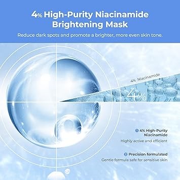 2-Step Niacinamide Brightening Ampoule Mask (1.5ml+33mlx5 PCS) - Hydrating Mask with Niacinamide, Himalayan Barley Beta-Glucan & Glacier Water for Spot Reduction