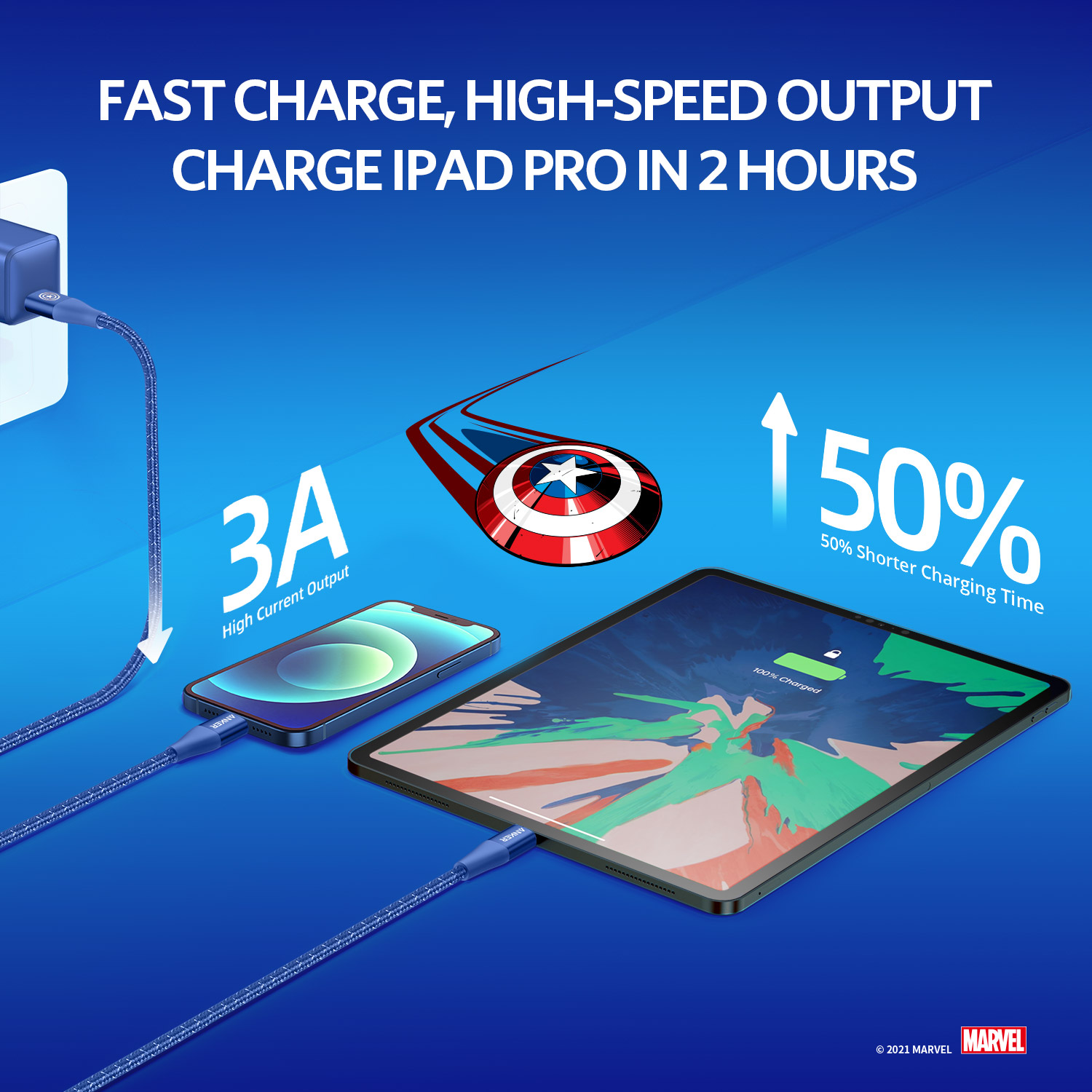 Anker x Marvel PowerLine+ II USB C to Lightning Cable 3ft|6ft iPhone Cable [Apple MFi Certified] Braided Nylon Fast Charging Cable for iPhone, iPad, and iPod (A9548|A9551)