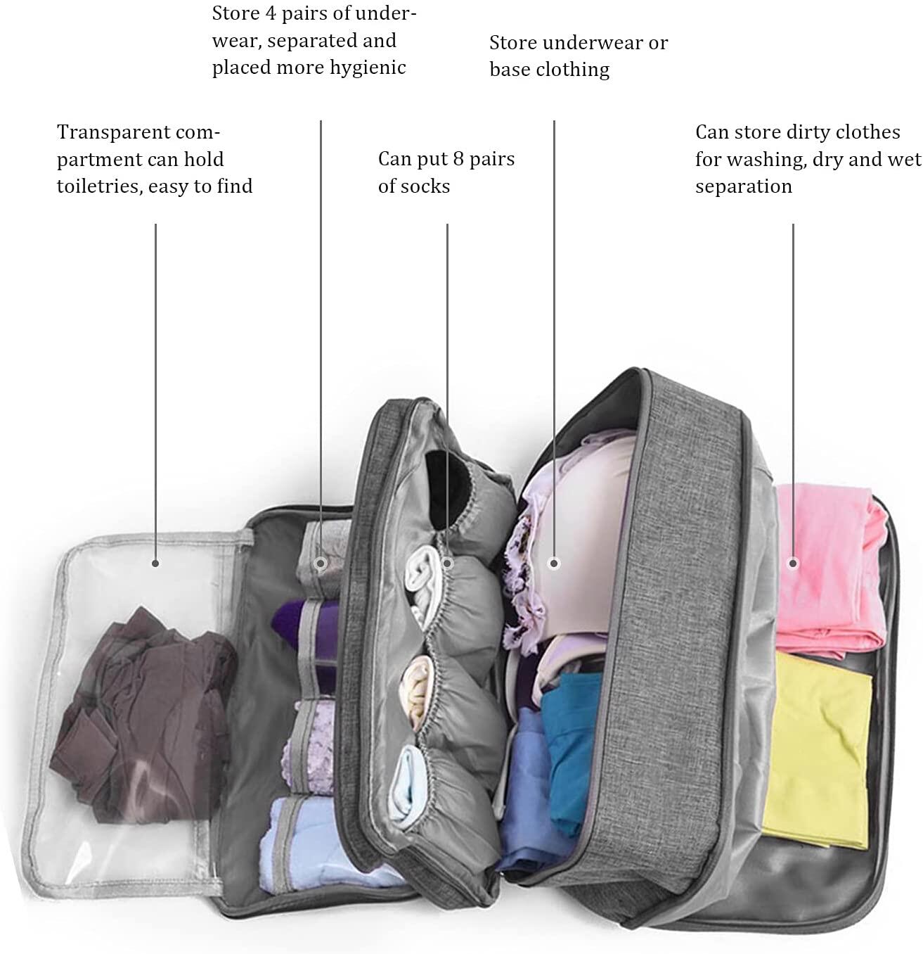 Large Capacity Travel Multi-Function Underwear Organize Storage Bag, Bra/Socks/Cosmetic Accessories Toiletry Accessory Bag for Men Women