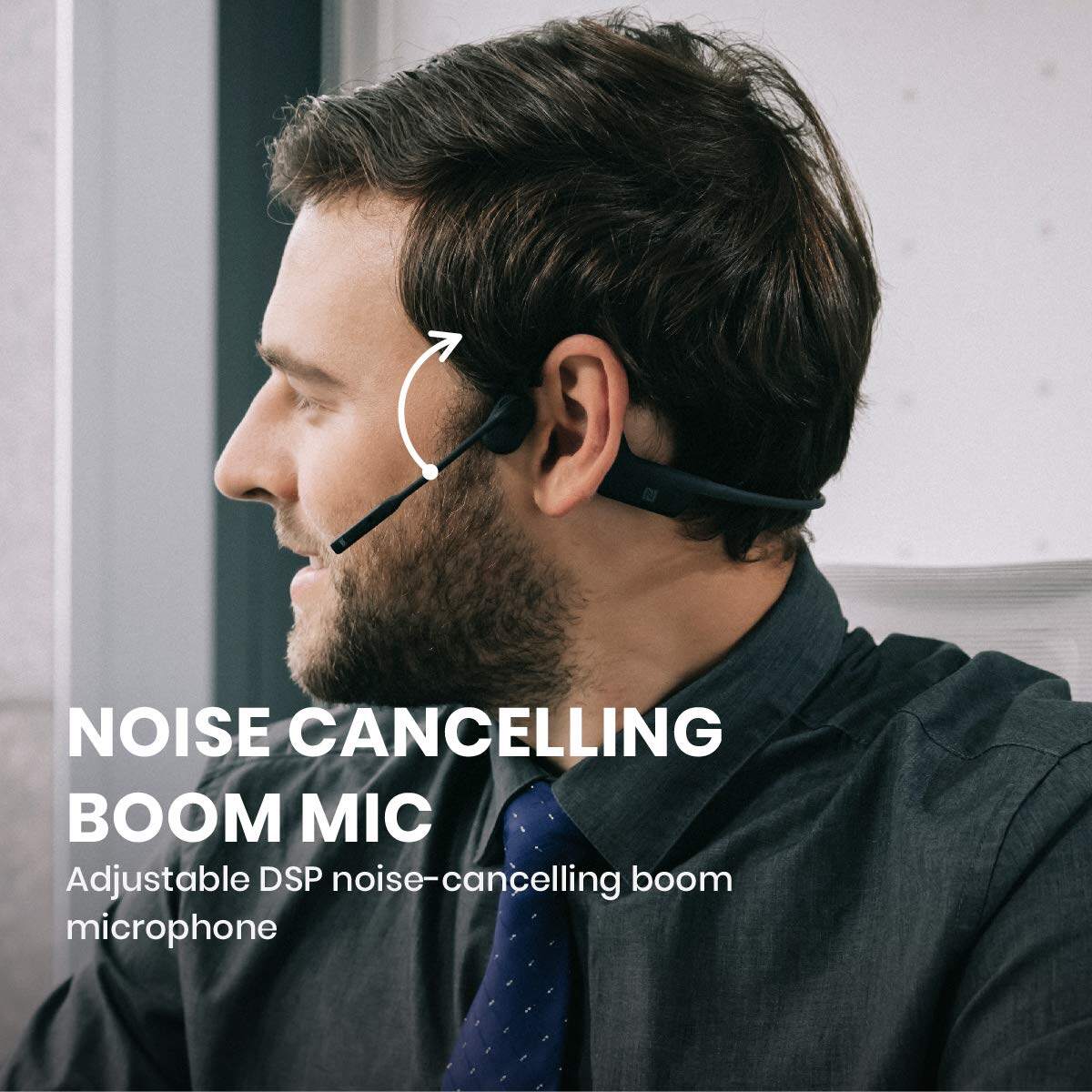 OpenComm is the first AfterShokz Bluetooth headset designed specifically for communication. The DSP noise-canceling boom microphone enables clear communication to help you stay connected while you’re on the road, on a jobsite, or at your desk.