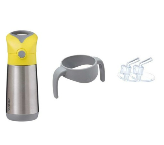 Clean modern design and big kid aesthetic. Available in six fab b.box colours. Kids love our easy drinking silicone straw top. Parents love no leaks in the bag (when the lid is closed). Replacement straw packs available, sold separately. When using to keep liquids warm - for best performance fill the stainless steel base with hot water for a few minutes to warm it before pouring water out - and filling with warm liquids.