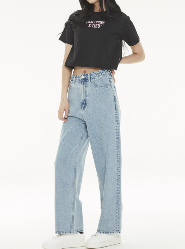 [EVISU KOREA] 100% Authentic English Print Crop Short-sleeve T-shirt