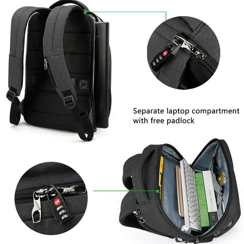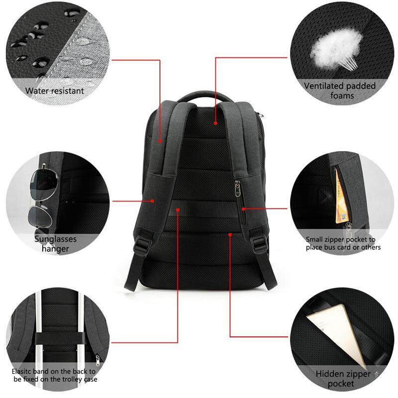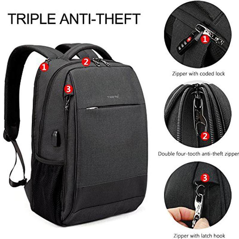 Features Description:It has no zipper or pockets on its front.So thieves can not unzip your bag,reach in and steal your belongings.Instead,it is zipper runs along the back of the bag.while the zipper is hidden under a flap.When you are on move,it is pressed securely against your back,away from prying fingers.The backpack is also water-resistant,which helps keep your belongings dry.