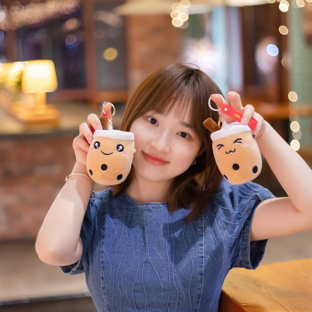 YONIT Cute Unique Birthday Gifts for Girls Children Stuffed Boba Doll Cartoon Design Car Key Ring Ornaments Bubble Milk Tea Keychain Women Key Chain Plush Toy Pendant