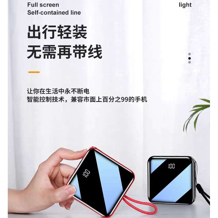 Full screen, large capacity, dual output, dual LED lights, full lens power bank, high appearance, mini body, much smaller than the palm, lighter body, one-handed, large capacity, portable