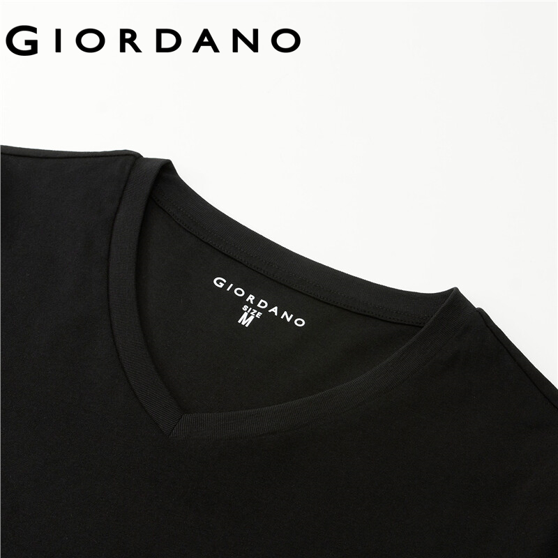 GIORDANO Women T-Shirts V-Neck Classic Plain Color Simple Basic T-Shirts Long Sleeve 100% Cotton Casual Comfy T-Shirts 13322759