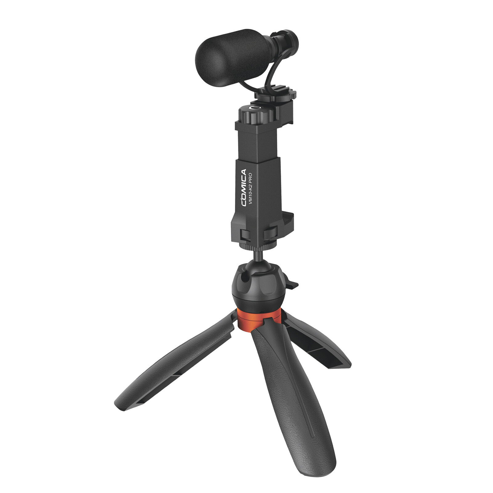 COMICA CVM-VM10-K2 Pro Multi-functional Smartphone Video Vlog Kit with Cardioid Microphone Ball Head Tripod Phone Holder 3.5mm TRS to TRRS Cable Foam Fur Windshield Carrying Bag