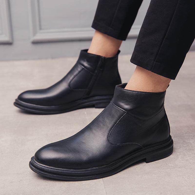 NICUDU Fashion outdoor British Style Chelsea Boots Men Ankle Boots Leather Men Boots Luxury Brand Slip on Man Shoes