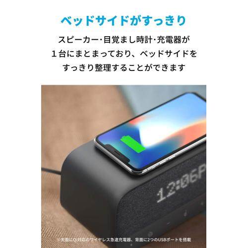 Anker Soundcore Wakey, Qi compatible Bluetooth speaker wireless charger High quality radio alarm clock 10W output Dual driver stereo sound for iPhone & Android (black)