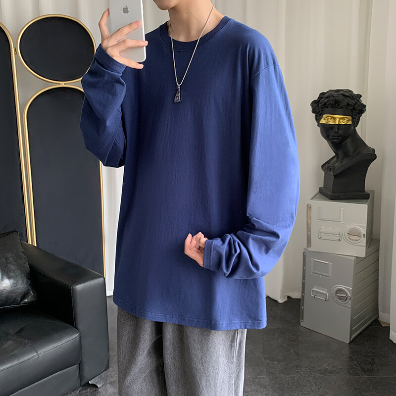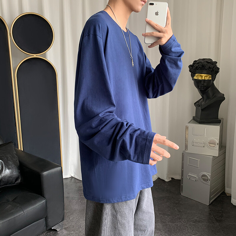 Blue t shirt Men Oversize Korean Style Long Sleeve Fashion Tops Casual Basic Plain t-shirt