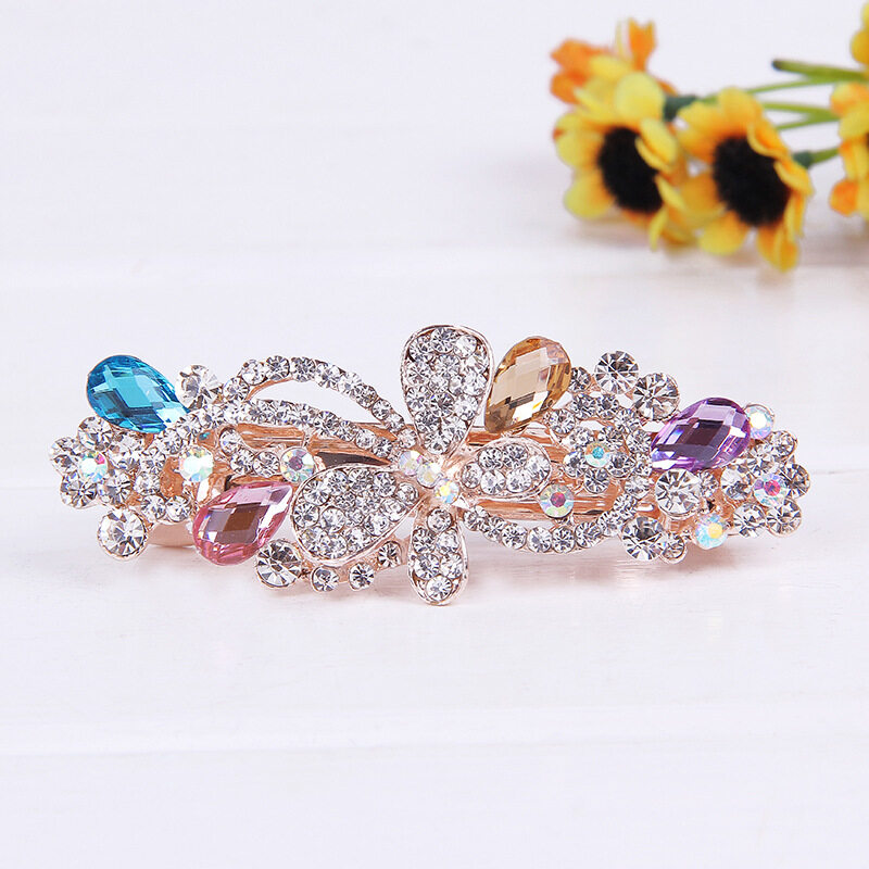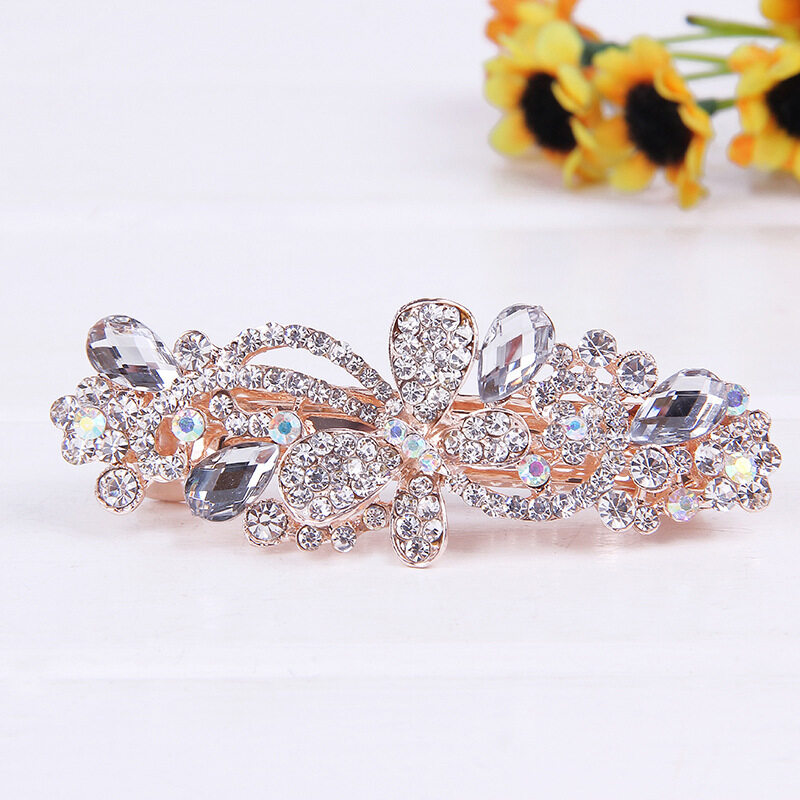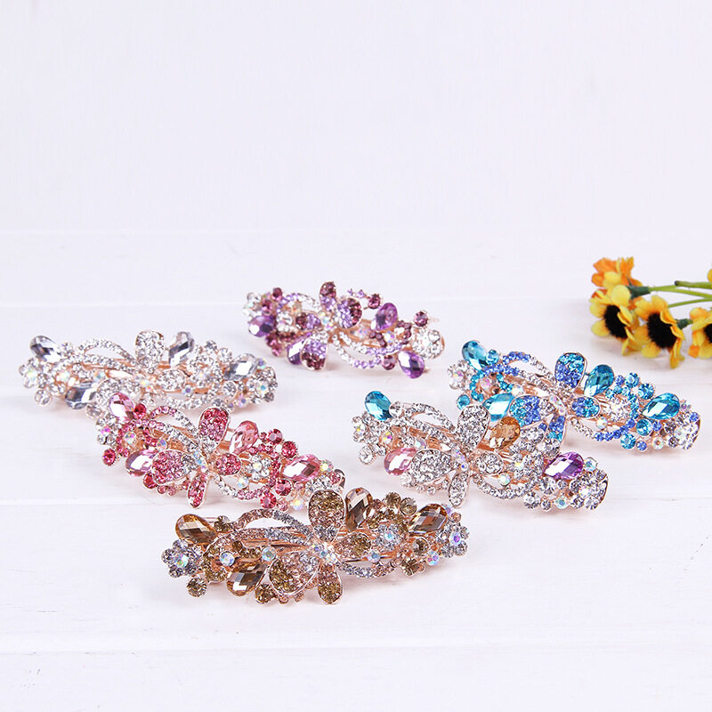 1pc Korean Rhinestone Hair Clip Fashion Bowknot Crystal Spring Clip Bridal Cross Hairpin Hair Accessories for Women
