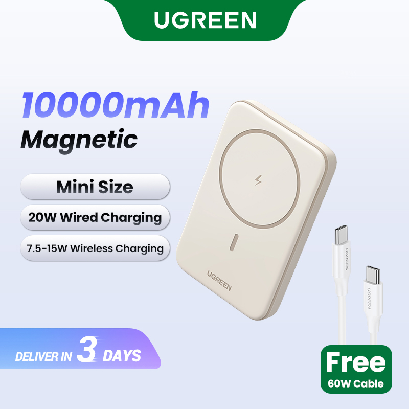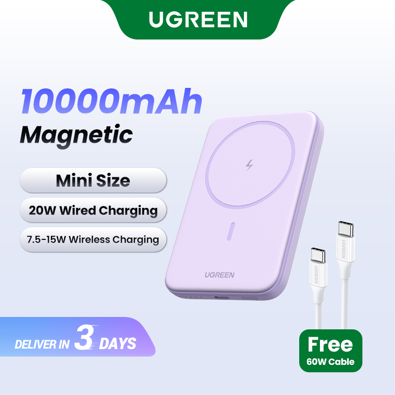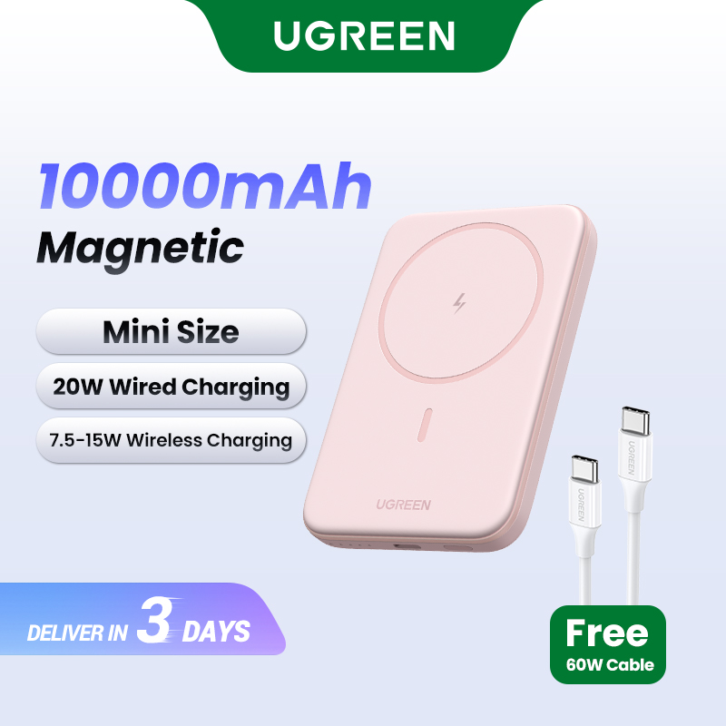 UGREEN 5000mAh/10000mAh PD 20W Powerbank USB Type C Magnetic Wireless Charging Power Bank Portable Charger Compatible for iPhone 16 15 Pro Max iPhone 16 15 Plus Samsung S24 Ultra S23 Pixel Huawei Hono