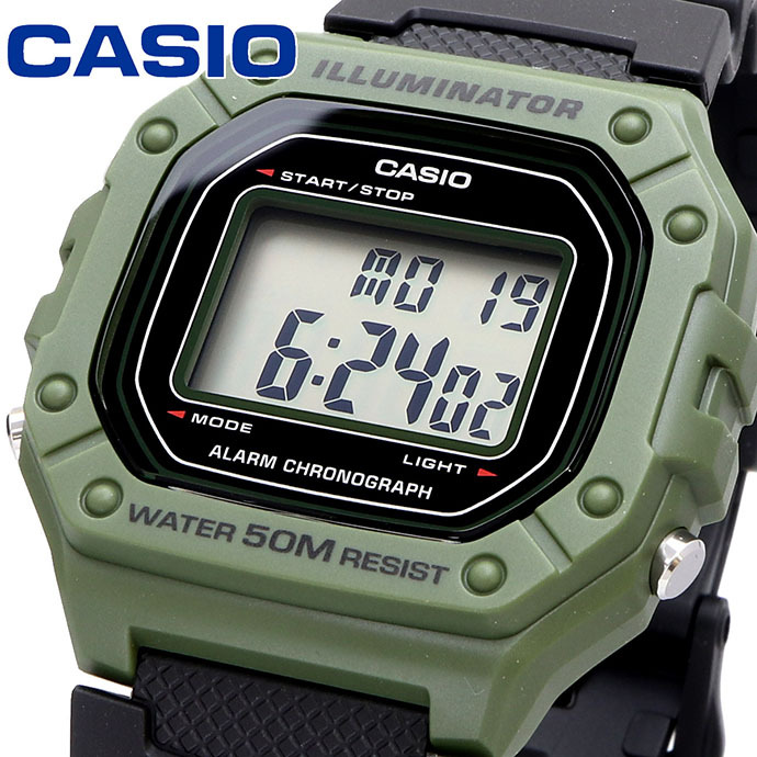 [Vinstore] Casio W-218H Green Resin Digital Sports Army Men Watch W-218H-3AVDF W-218H-3A W-218H-3AV