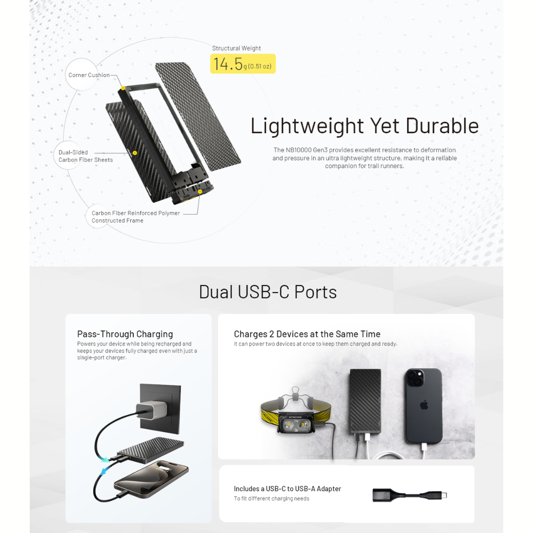 Nitecore NB10000 Gen 2 (USB-A+USB-C) / Gen 3 (USB-C x 2) Quick-Charge Dual Port 10000mAh Power Bank Powerbank
