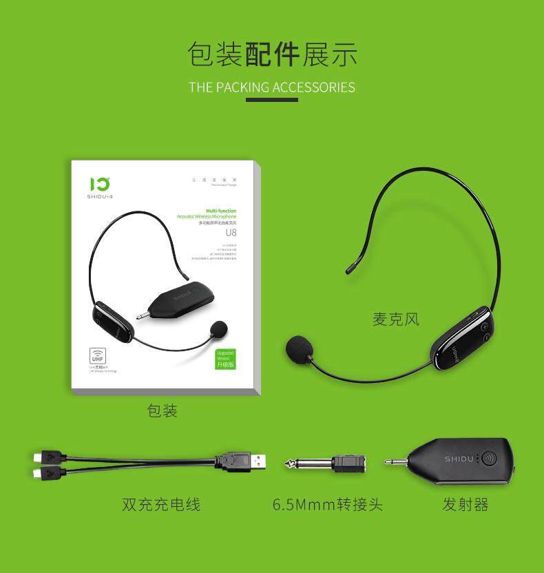 SHIDU U8 Upgraded UHF Wireless Head Headset Microphone 2 In 1 Handheld Portable MIC Voice Changer Amplifier For Speech 3.5mm Plug Receiver