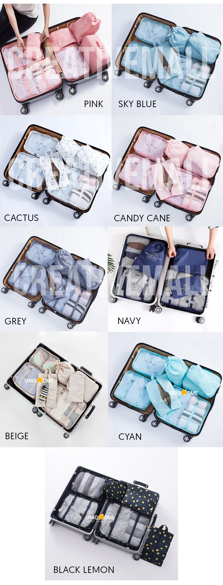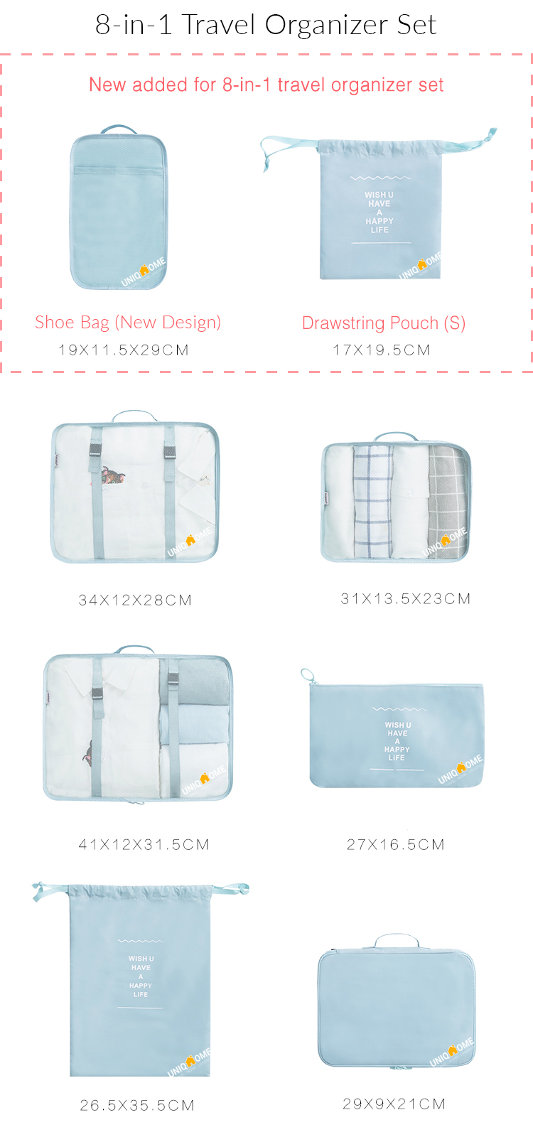 UniqHome Travel Organizer 8 Pieces Foldable Washable Luggage Set Organizer Travel bag Luggage Organiser Packing Bag Travel Organiser