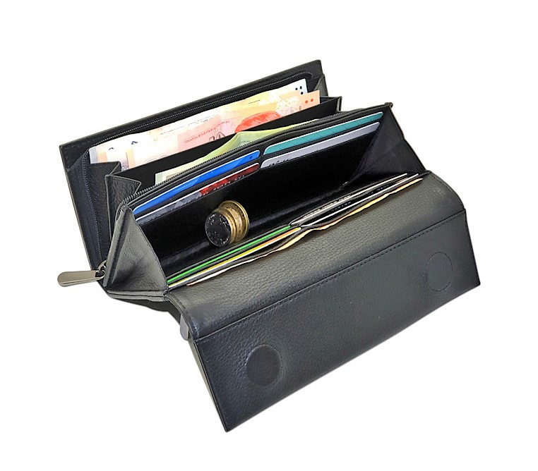 Women Wallet Long Purse - Lady Long Wallet - Cow Leather Wallet for Women - Lady Wallet Branded in Black/Green colour- Oxhide J0016- Excellent Christmas Gift Idea