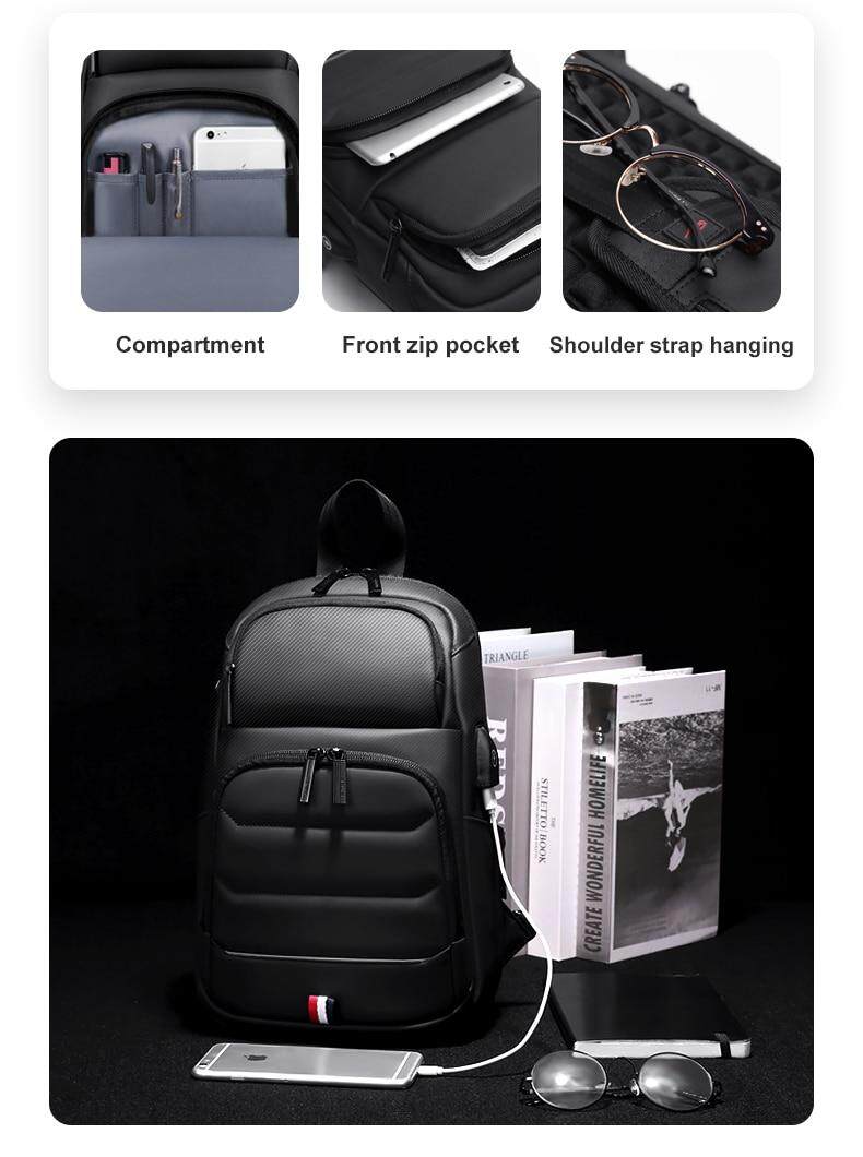 FRN New Fashion Men Chest bag for 9.7 iPad USB Charging Short Trip Messenger Bags Water Repellent Crossbody Shoulder Bag