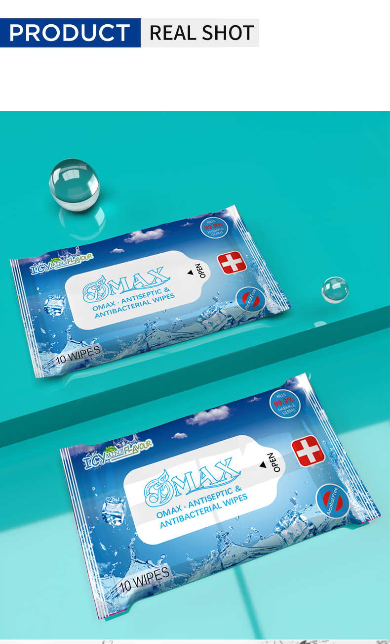 OMAX SG / FAMILY TRAVEL ANTIBACTERIAL ICY MINT / TOTAL 24 PACKS OF WET WIPES