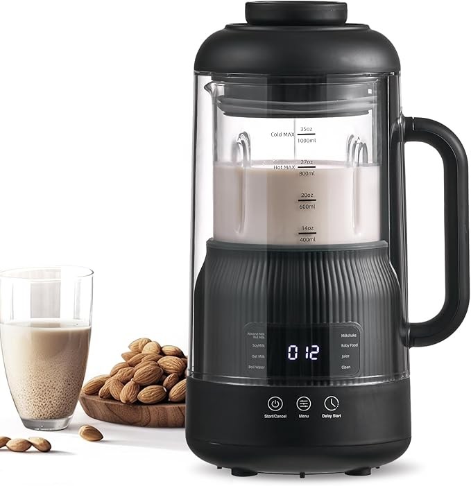 • 【8-in-1 Versatile Functionality】No soaking required—this all-in-one nut milk maker lets you easily prepare a wide range of plant-based drinks including nut milk, soy milk, oat milk, milkshakes, rice paste, tea, boiled water, and fresh juice. Plus, the self-cleaning function saves time and effort, making it your ultimate kitchen companion for healthy living.