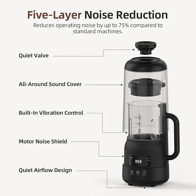 • 【Low-Noise Operation with Soundproof Cover】Enjoy a quieter blending experience with the built-in soundproof cover and shock-absorbing base, reducing noise quieter than traditional blenders. The detachable design includes a transparent viewing window for monitoring at a glance, while the liftable cup ensures safe, mess-free cleaning.