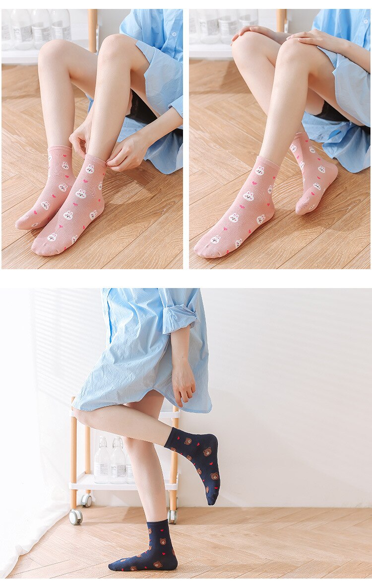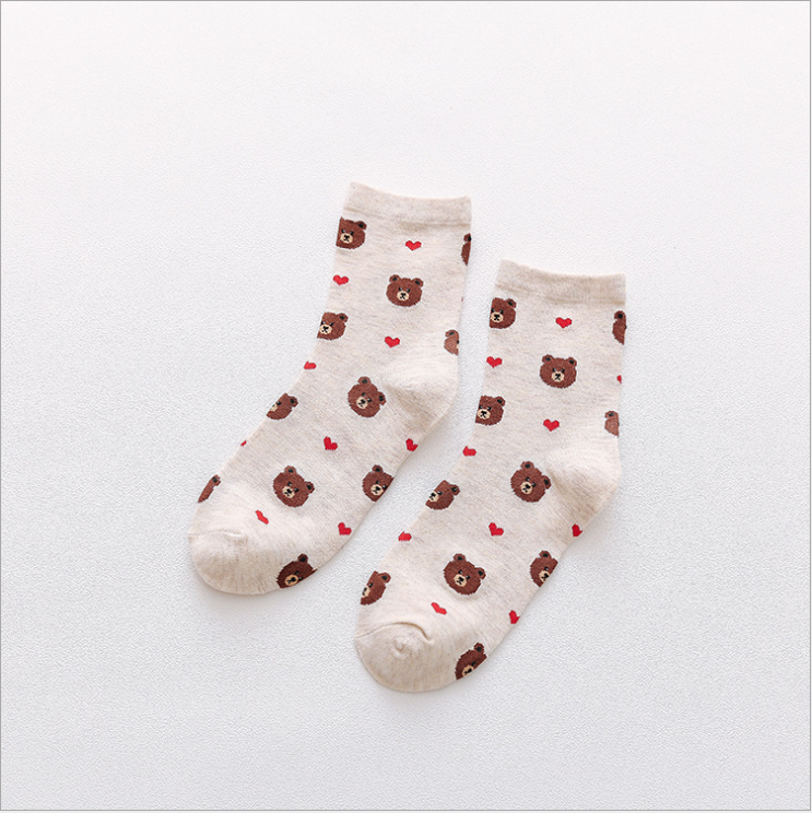 (10 pairs, 10 colors) Brown bear socks For Women Men Kids Children Cute Cartoon Short Socks