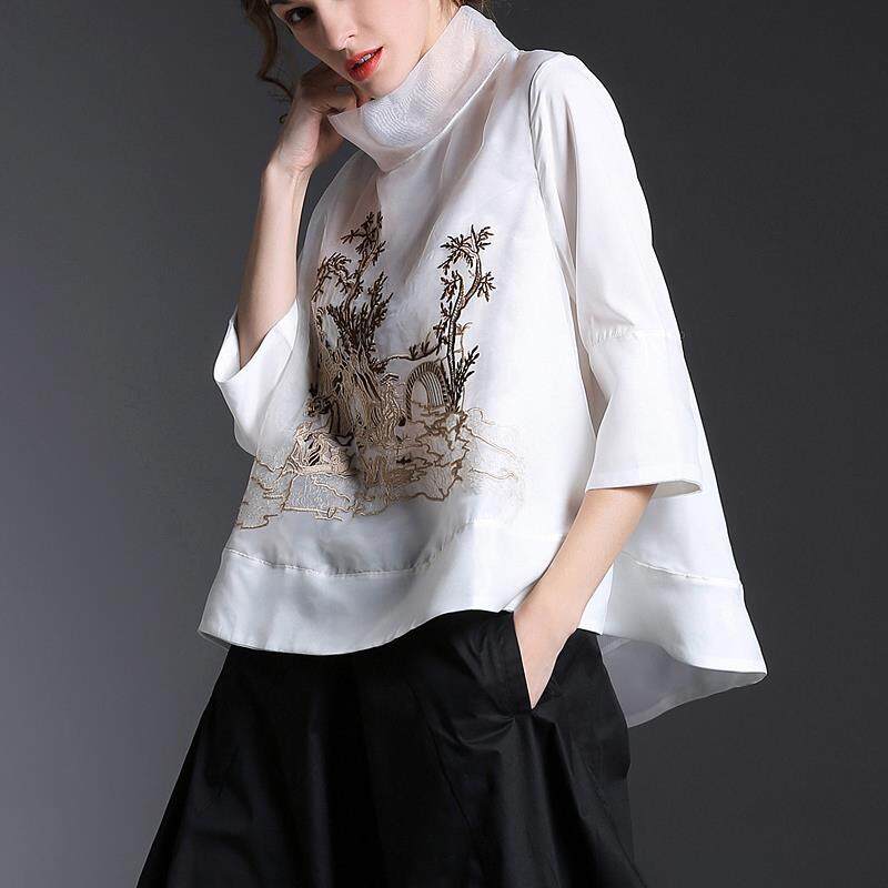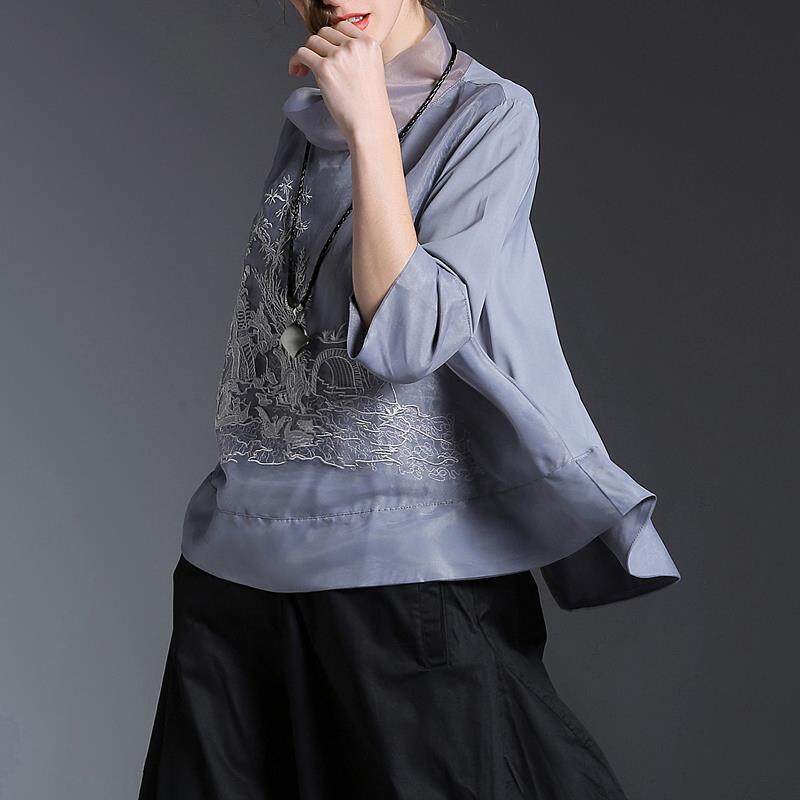 Chinese New Fashion Runway Shirt Chic Embroidered Loose Gauze Shirt Elegant Women's Stand Collar Retro Shirt Tops Quality