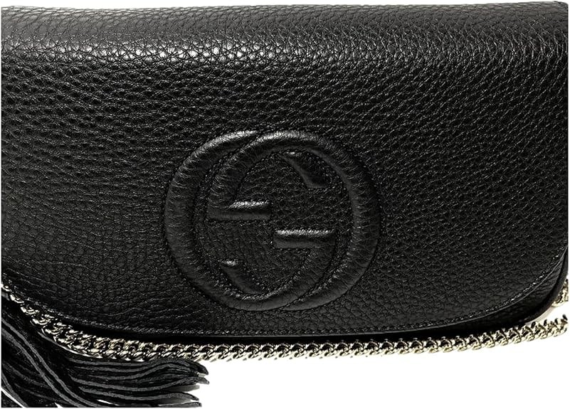 Gucci Soho Leather Flap Shoulder Bag Black Gold Tassel New Authentic