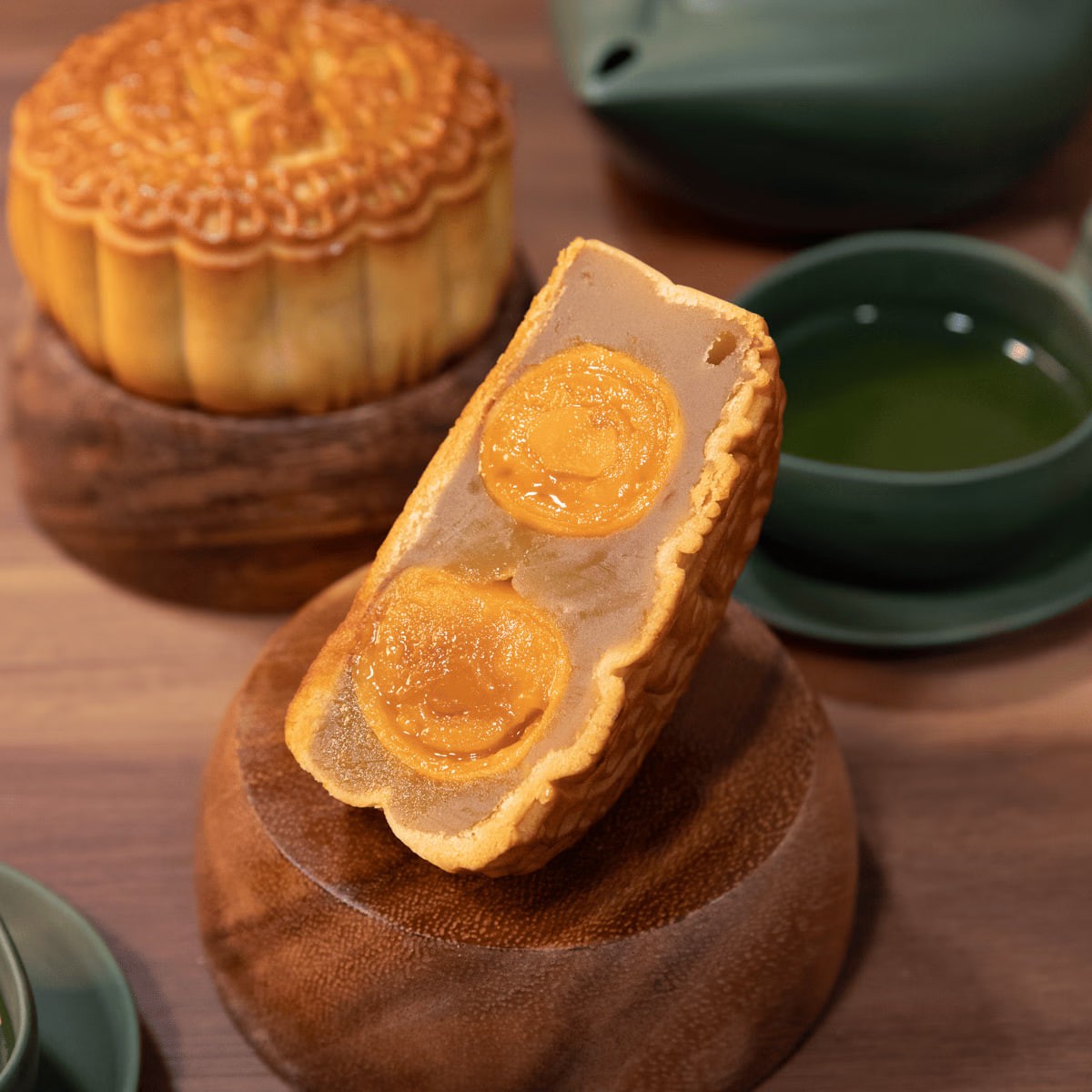 Mondkuchen aus weißer Lotussamenpaste mit doppeltem Eigelb