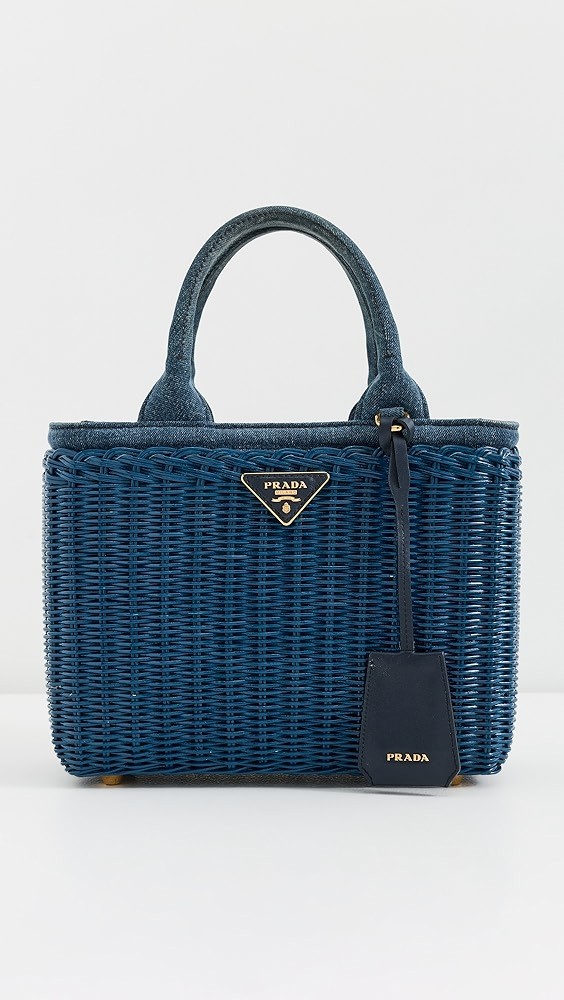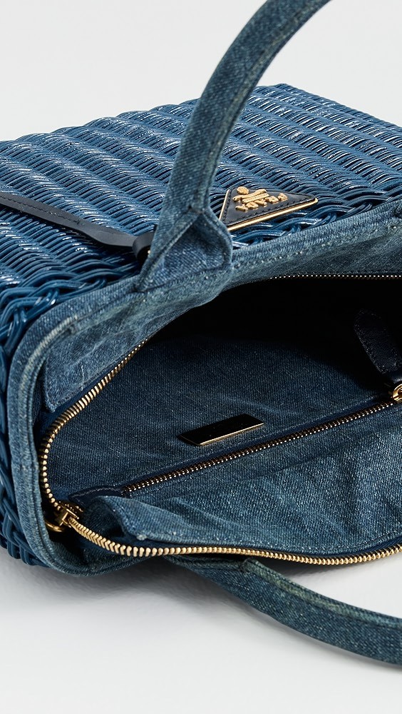 Prada Raffia Straw Denim Handbag