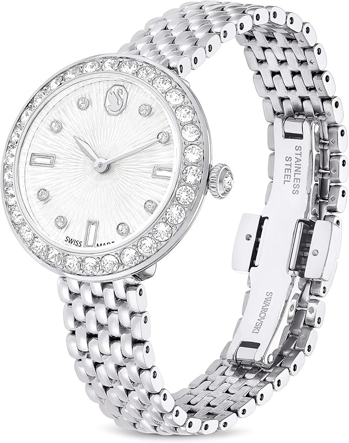 • Shimmering Style: Featuring a stainless steel case with a sparkling crystal pavé bezel and a single crystal in the crown, this timepiece sparkles in a way that only Swarovski pieces can